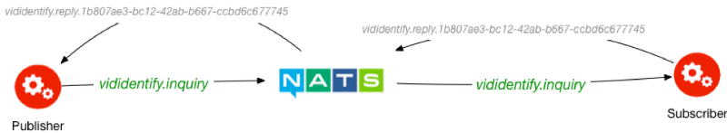 در اینجا NATS برای اینکه بتواند چندین درخواست همزمان را بررسی کند و مطمئن شود که کد نوشته شده پاسخ درخواست را تنها به همان درخواست کننده مشخص ارسال نماید، اغلب به انتهای موضوع reply-to یک رشته متن تصادفی GUID اضافه مینماید. به طور مثال reply-to: myvideos.reply.78707692-c45b-4711-a721-49e13f90308d خواهد بود. البته معمولا این پیچیدگیها توسط client های هریک از زبانهای برنامهنویسی انجام میشود و به طور مثال در زبان GO کد شما به این شکل خواهد بود.