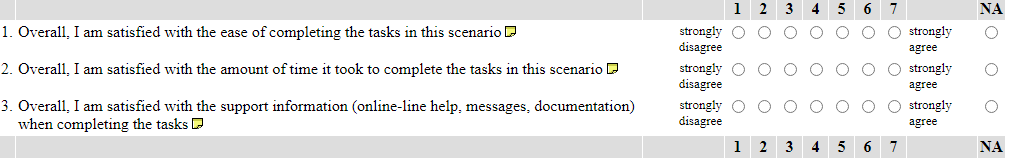 - ASQ: After Scenario Questionnaire (3 questions)
