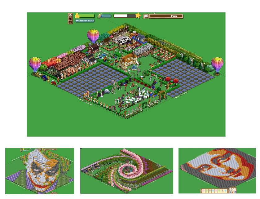 - به کاربر امکانی را برای انتخابِ آگاهانه دهیم؛ در ادامه به چند زیر عکس نگاه کنید که رفتار افراد در بازی ساده “مزرعه” به چه صورت بودهاست؟ شاید فرد چنین ضرورتی را برای خلق یک اثر هنری را در زمین خود، نداشتهباشد، اما این توانمدسازی در خلاقیت است که کاربر را به تعامل بیش از حد ترغیب میکند. همچنین این خلاقیت به شخصیسازی کمک میکند و قتی براساس سلیقه یک فرد همهچیز چیده شود هویت منحصربه فردی برای کاربر تولید میشود که حس مالکیت را بالا میبرد.