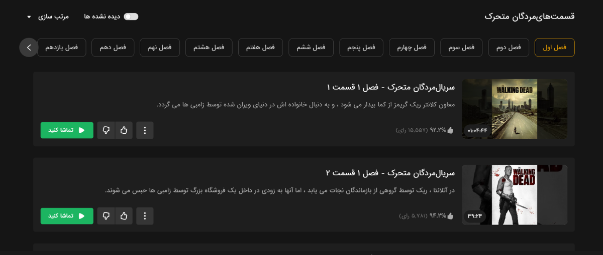 نحوه نمایش فصلها و قسمتها در فیلیمو در طرح فعلی: